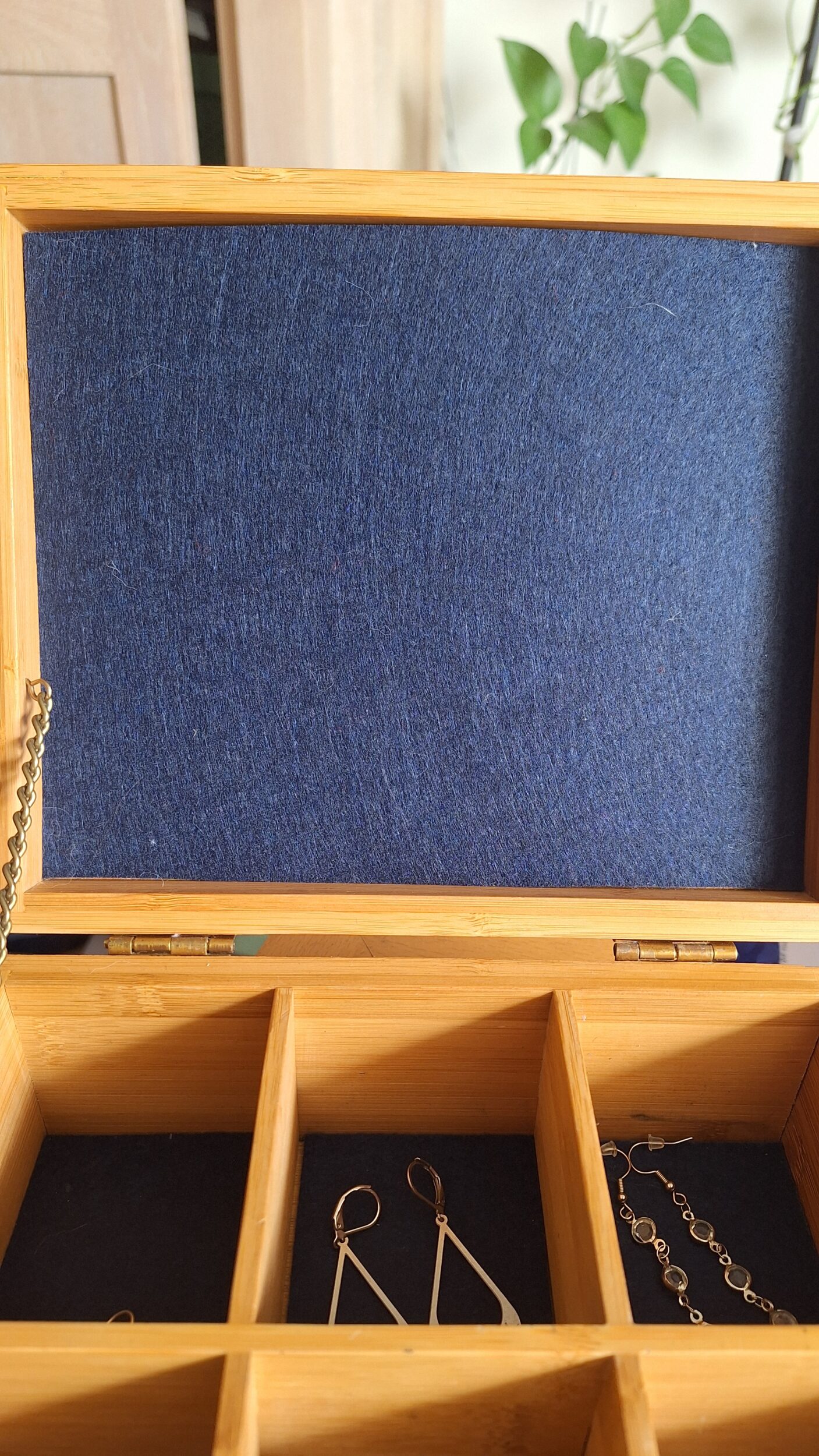 Les cases sont un peu trop hautes et je ne peux malheureusement pas décoller le quadrillage intérieur, j’aurai pu raboter du coup mais hélas impossible. J’envisage quand même d’installer des petits coussinets, comme ceux utilisés pour des bagues, qui me permettraient de gagner en hauteur. J’ai une wishlist longue comme le bras de bagues, justement, que je rêve de m’offrir mais comme toutes les wishlists dignes de ce nom ce n’est clairement pas pour demain.